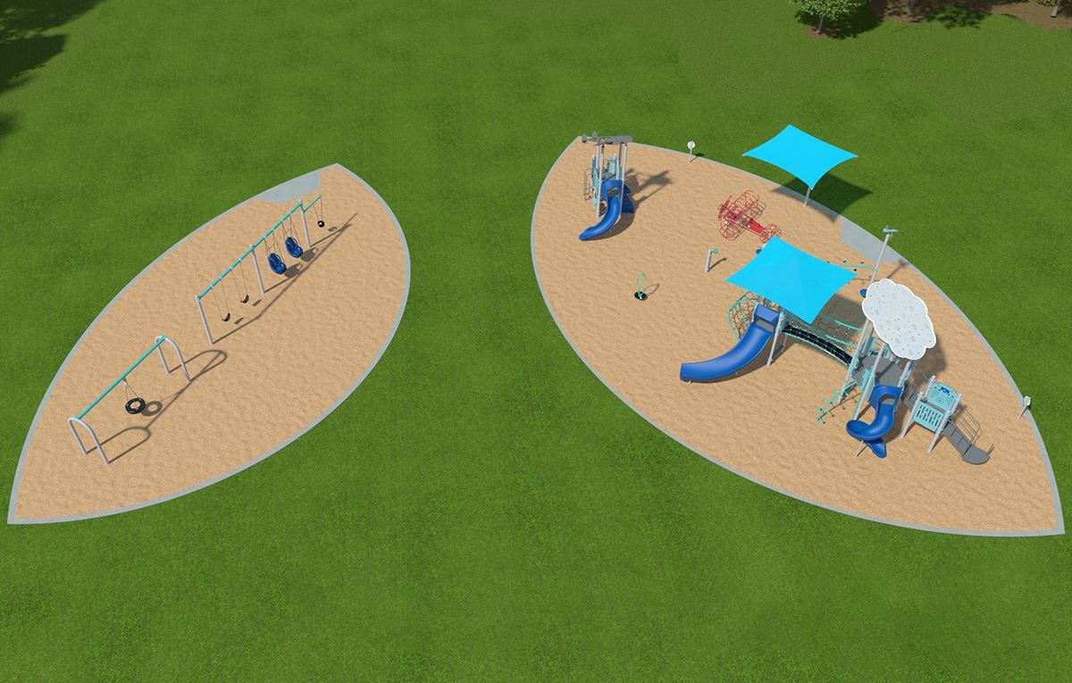 The George Rogers Playground Renovation Project consist of relocating the new 2-5 playground structure south, towards Hillside Drive, to site in the same pit at the new 5-12 playground. The smaller, north pit, will be the site of the new, assorted, swing structure which will contain a variety of swing styles for all ages. The renovation project will consist of installing the following new features: concrete ADA ramps for accessible access to and from the playground pit, playground equipment, wood chips, and shade canopies.